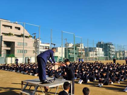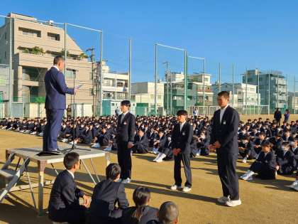 表彰の後は、校長先生と生徒指導主事の永田先生からお話がありました。