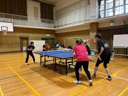 春日出運動公園ではソフトボール、春日出中学校体育館ではバレーボール、春日出小学校体育館では卓球が行われました。このように年間数回、親善大会が開催されています。興味のある方は、梅香中学校PTAまでご連絡ください。みなさんの参加をお待ちしています。