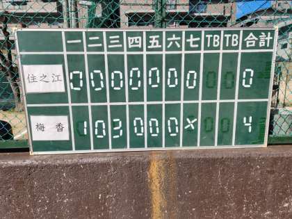 試合は梅香ペースでスタートします。住之江の1つのミスから先制しますが、追加点がなかなかとれません。逆に梅香はピンチは作られますが、投手を中心にふんばります。3回には住之江のミスから好走塁で追加点。梅香ペースで試合が進みます。その後もお互いランナーはでるものの点に結びつきません。結局そのまま試合が終わり、梅香は勝利することができました。しかし春の大会に向けて、まだまだ課題がたくさんあります。少しずつ克服していきたいです。