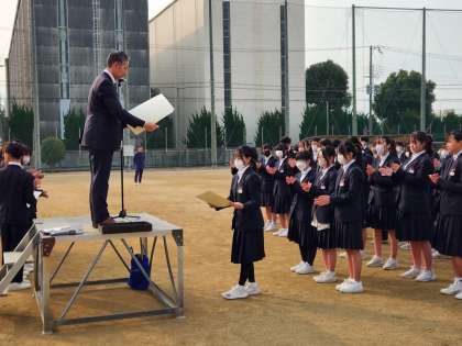 今日は、3年生最後の集会「お別れ集会」でした。書道部の表彰、校長先生の話の後、在校生代表あいさつ、卒業生代表あいさつがありました。最後は在校生で作られた花道を通って、教室へ戻りました。3年生は、来週公立高校一般入試を控えています。体調管理に気をつけて、頑張っていきましょう。