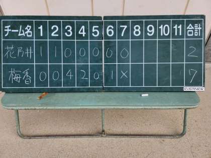 試合は花乃井ペースでスタートします。連打、スクイズ先制されます。追いかける梅香は、3回花乃井のミスでチャンスを拡大させ、タイムリーとエンドランで逆転に成功。4回にも追加点を奪い、梅香ペースで試合が進みます。6回にはダメ押し点も奪って、梅香は勝利することができました。しかし夏の大会に向けて、まだまだ課題がたくさんあります。少しずつ克服していきたいです。