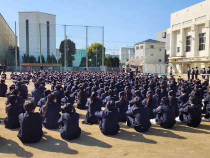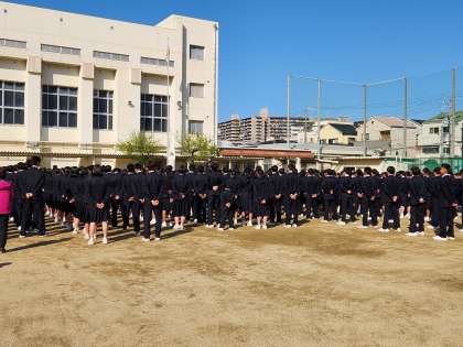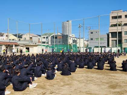 本日は、令和6年度の初めての運動場での集会でした。集会があるときは、いつもより早めの登校を心がけましょう。今日は生活指導部から整列についての指導がありました。その後生徒会主催で対面式が実施され、在校生・新入生代表生徒による挨拶がありました。