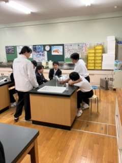 理科室で実験による学習の様子です。