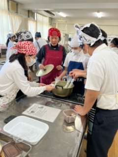 調理段階や後片付け等、班で協力して頑張りました。