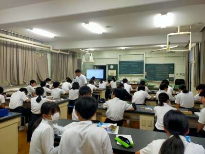 今日は、大阪市総合教育センターから支援員にお越しいただいて、授業を見てもらいました。