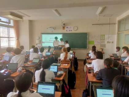 今日は、ある学級で、生徒が会社を立ち上げ、社員募集の説明会をする設定で、発表をしていました。