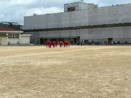 雨の影響でグラウンドが水浸しになり、思うようにプレイができない中、必死にボールを追いかけ、なんとか追加点を入れます。試合終了かと思われましたが、終了5分前に相手チームに1点を奪われました。