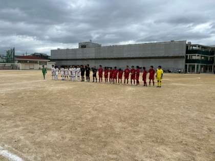 先制点を決めたのは梅香、コーナーキックからのボールをヘディングでゴールに押し込みます。しかし、相手チームにも押し込まれ、1点を許します。そして前半は終了。