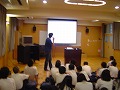 10月8日(火) 16:00〜 梅香中学校多目的室におきまして、第1回エンターテインメントクラブが開催されました。事前の参加希望者52名を上回る54名の参加で行うことができました。講師は前回の開講時に話をされた卒業生の吉田将義さんです。
