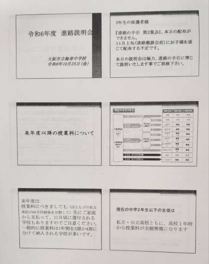 本日欠席されたご家庭には、来週以降に資料を生徒を通してお渡しいたします。