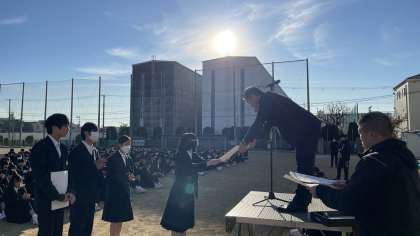 今日は夏休みの宿題で実施した、平和学習レポートと税の作文に関する優秀作品の表彰がありました。受賞者のみなさま、おめでとうございます。