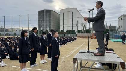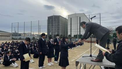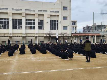 今日は、2年生6名が社会を明るくする運動に関する標語で表彰がありました。その後校長先生や1年生担当の先生からお話がありました。