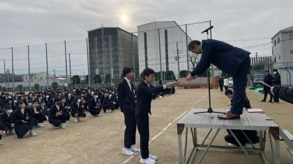 今日は、男子ソフトテニス部のブロック大会の表彰から始まりました。その後、校長先生から新しい国語の先生の紹介がありました。また3年生担当の先生からお話がありました。