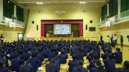 本日、1・2年生は自衛隊による防災授業を受けました。阪神・淡路大震災から21年目の日をむかえるにあたって、改めて防災に対する意識を高めました。実際に災害時に救助を行う自衛隊員の現場の話を、生徒たちは集中して聞いていました。最後の質問も、生徒たちからたくさん出て、充実した時間をおくることができました。