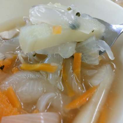 まずは、豚肉のガーリック焼きをいただく。ジュワッと香ばしい香りが立ちのぼる豚肉のガーリック焼き。口に入れた瞬間、カリッと焼かれた表面の食感と、にんにくのパンチのある旨味が口いっぱいに広がる!噛むたびにあふれる肉汁とにんにくの風味が絶妙に絡み合い、ご飯が止まらない!これはもう…ワクワクが止まらない至福の味わい。そのあとのスープ。やさしい香りに包まれ、一口すすればホッと心ほどける。素材の旨味がじんわり染みる、シンプルだけど奥深いスープ。体に染み渡る癒しの一杯。