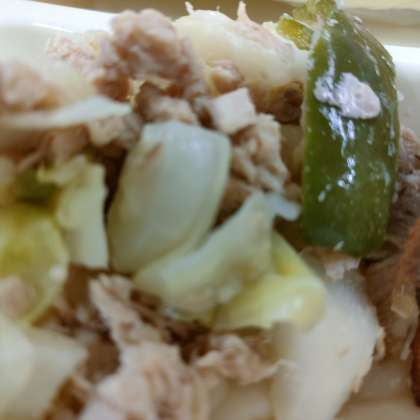 豚肉のガーリック焼き スープ ツナとキャベツのソテー