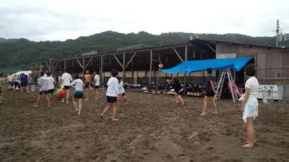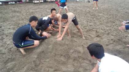 砂浜で遊んでいるグループやボール遊びをしているグループもあります。暑くなく寒くなくちょうど良い気温です。