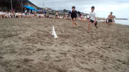 クラス対抗ビーチフラッグを楽しんでいます。