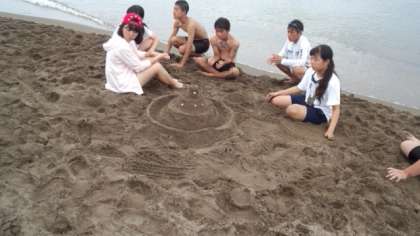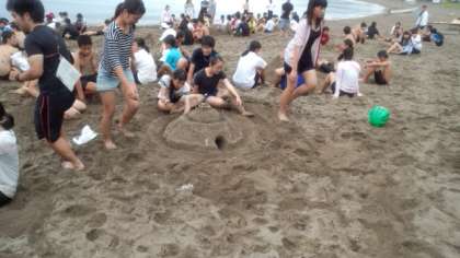クラス対抗の砂でのお城づくりコンテスト、素晴らしい作品がたくさんできました。
