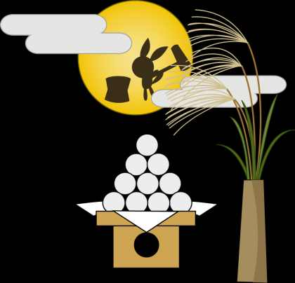 初秋は台風や秋雨の日々が続きますが、中秋には大陸の乾燥した冷たい空気が流れ込むため、秋晴れに恵まれ大気の澄んだ季節となり、お月様がとても美しく見える時期なのです。そこで、上流社会で観月の宴を催し、風雅に月をめでていましたが、のちに作物の収穫祭と結びつき、人々は豊かな実りの象徴として十五夜を鑑賞し、お供えものをして感謝や祈りを捧げるようになったとの説があります。風雅で感謝と祈りに満ちた素敵な行事、その象徴がお供えで、ひとつひとつの意味を知ると、心が和み幸せ感度があがりますね。日本では月の模様を「うさぎが餅をついている」ととらえますが、月うさぎは慈悲の心の象徴なので、こちらも知っておくとお月様を見る目が変わると思います。でも、やっぱり「月よりだんご」ですかね?!