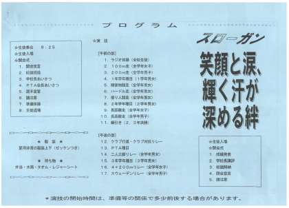 本日、9月23日(金)保護者あての体育大会しおり・プログラムをお子様を通じて配布しています。大会スローガンは生徒議会で話し合いの結果、次のように決まりました。「笑顔と涙、輝く汗が深める絆」、9月30日(金)当日は、子どもたちの活躍、頑張りをぜひ応援していただければ幸いです。