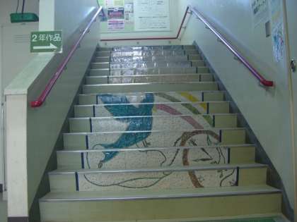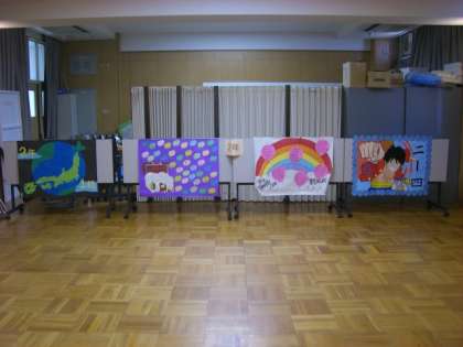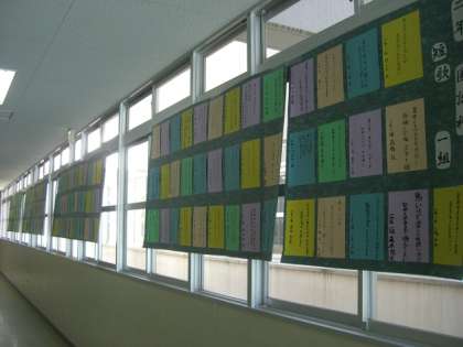 道徳人権委員会 一言メッセージ「たからもの」、2年生 階段アート「時を超えて」、国語科 2年短歌 です。