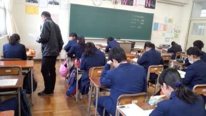 本日、1月20日(金)午後から1年生は百人一首大会、2年生は英検(実用英語技能検定)にチャレンジする予定でしたが、2年生でインフルエンザ・胃腸炎等による欠席者が多く見られたため、英検を午前中に実施して、給食後下校の措置をすることにしました。1年生は予定通りです。ご理解いただきますようお願いします。なお、土曜日・日曜日は出来るだけ不要な外出を避け十分に休養するとともに感染予防に努めるようにしてください。3年生は、来週1月24日(火)から26日(木)まで学年末テストが計画されています。24日(火)は数学・国語・音楽、25日(水)は英語・技術、26日(木)は理科・社会・保健体育のテストです。体調管理をしっかりしてテストに挑んでほしいと願っています。がんばれ!梅香中学校生徒諸君・・・