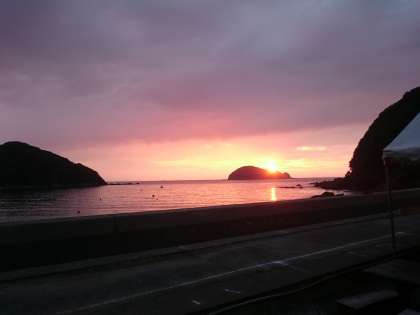 一泊移住初日の日が沈みます。これから体育館で集団行動と室内オリンピックです。