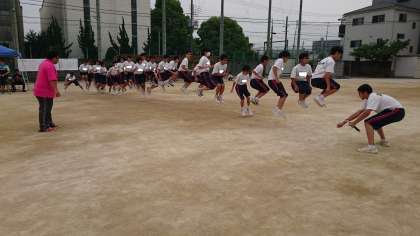 各クラス、昼休みに懸命に練習し、たいぶ苦戦していた全員跳び。