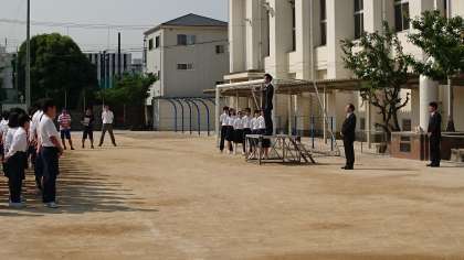 今朝の全校集会で実習生から「あいさつ」を全校生徒の前でしていただきました。