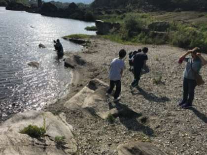 農作業を終えてファームステイ先の近くの吉野川で思い思いに過ごしています。