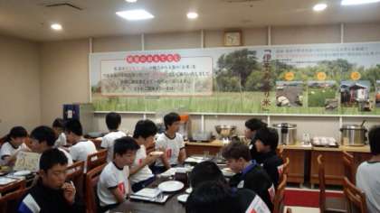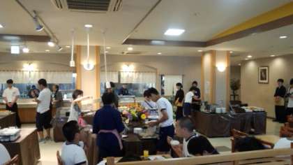修学旅行最終便の朝食は、バイキングです。和食やパン食など種類も豊富でいただきました。