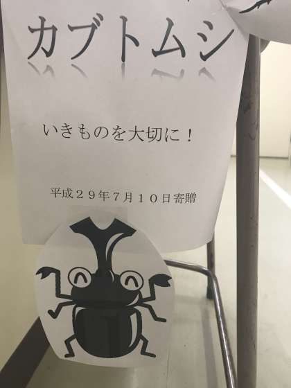 本日(10日)、保護者の方からカブトムシを寄贈していただきました。