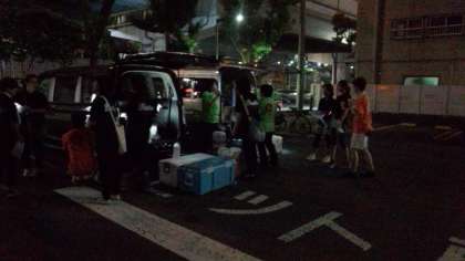 第一ポイントラストの班が到着です。給水ありがとうございます。