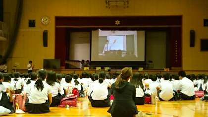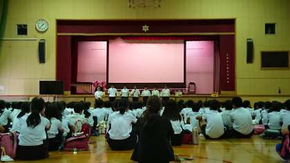 まずは、体育館に集合し、生徒会を中心とした小中交流会を行いました。