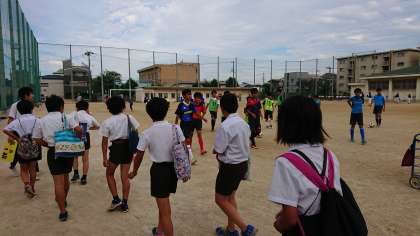 それぞれの場所で活動しているクラブを見学だけですが、中学生のお兄さんお姉さんの頑張っている姿を見ました。