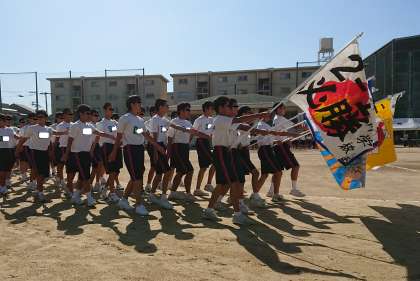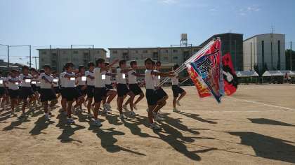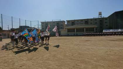 どのクラスも自慢の応援旗を持って行進しました!