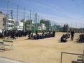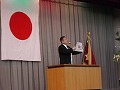 入場前の様子と学校長式辞の様子です。写真は4月1日(火)の毎日新聞に掲載された本校の「防災アート」の記事を掲げて式辞を行う学校長です。式辞の内容は、新聞に掲載された先輩のように、梅香中学校の頑張っている姿を内外に示すことができるような生徒になって欲しいという話でした。