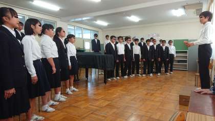 合唱コンクールの練習をクラスごとにしました。今回は「音楽室」での練習割り当てでした。