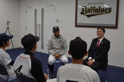 『オリックス・バファローズ座談会』に本校の野球部の生徒が代表として参加しました。
