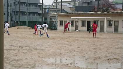 1試合目は…瓜破中さんと対戦しました。雨が降り続く中での試合でしたが、積極的に攻めていきました。