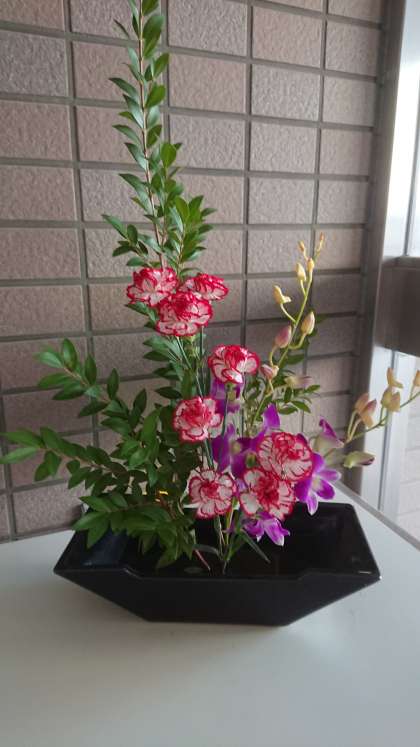 梅香中学校の玄関の生け花が新たなものになっていました。