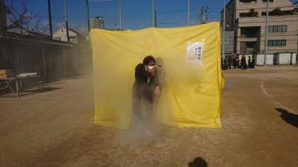 ◆全員で体験しました。実際の火災では、煙の中をどのように避難したらよいか。煙の特性が分かったのではないかと思います。ハンカチなど口を押えるものが必要ですね。