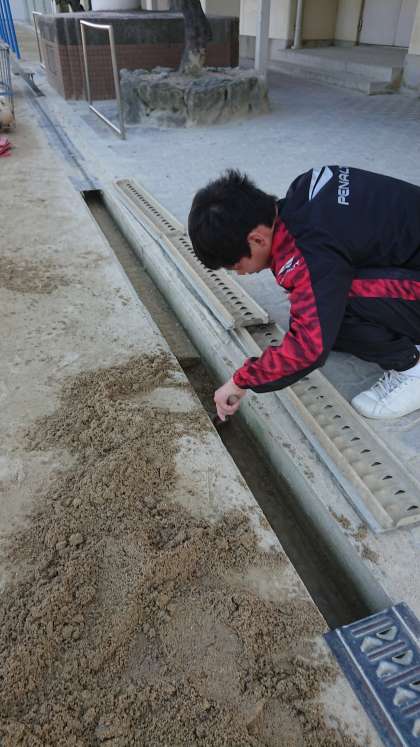 長い間、ほとんど掃除されていなかった側溝の砂をBAIKA FCの選手たちが今回も掃除を手伝ってくれました。