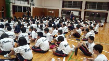 晩ごはんのカレー、早かったのでお腹すいたよね。綱引き大会の後のパンとオレンジジュースにみんな大満足ですね。