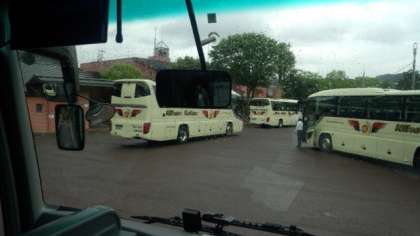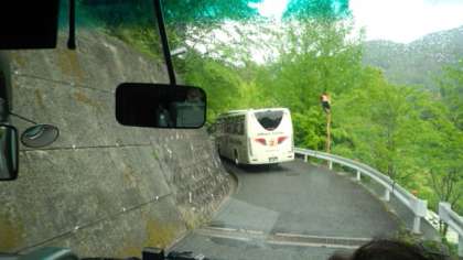 スムーズに移動も完了し、バス乗車も終わったので少し早いですが、宿舎をでます。みんなを乗せたバス5台は一路、学校へ出発進行。
