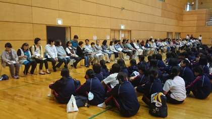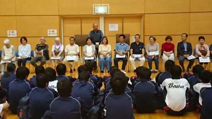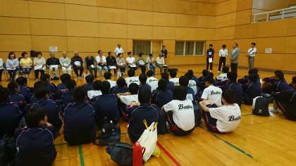 あいにくの雨のため、近隣の体育館を借りて入村式を行いました。