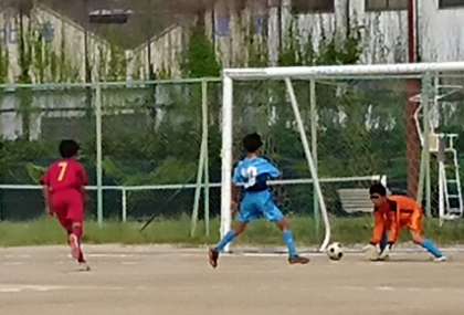 相手チームにちょっとしたスキにゴールを決められましたが、あきらめずに攻め続けました。