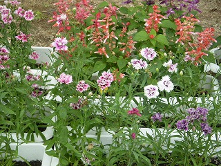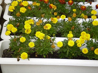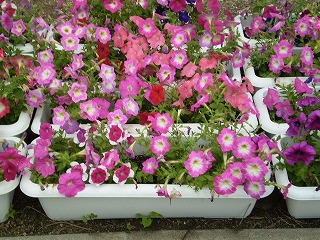 正門を入ってすぐの玄関前に花壇があります。此花区役所の方から頂いた花がきれいに咲いています。