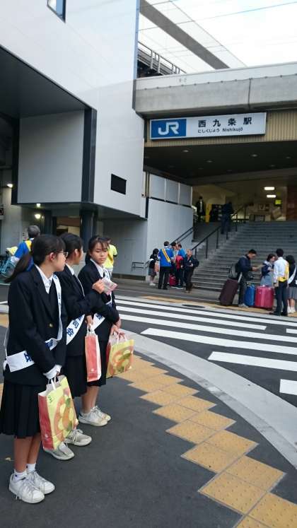 本日、11月14日(水)放課後、生徒会の役員7名が西九条駅前周辺で「社会を明るくする運動」の啓発活動ボランティアに参加をしました。担当の先生方と一緒に、地域でつくる安全・安心な社会「更生保護」ってなんだろう?のパンフレットと啓発グッズのポケットウェットティシュを道行く人たちに声をかけながら手渡していました。此花区の社会福祉協議会や保護司会の代表の皆さんとともに大きな声で頑張ってくれました。とてもかっこよかったです。